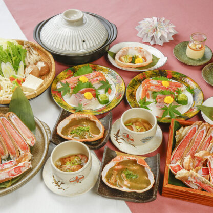 【冬まるごと城崎温泉!3大特典付、かに会席】計1.5杯使用のズワイカニ💛 総量 約900gのずっしり太いかにのお造り×焼きガニ×カニすき鍋ご堪能「冬霞プラン」