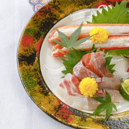 向付け ズワイカニの湯霜造り、鮮魚のお造り
